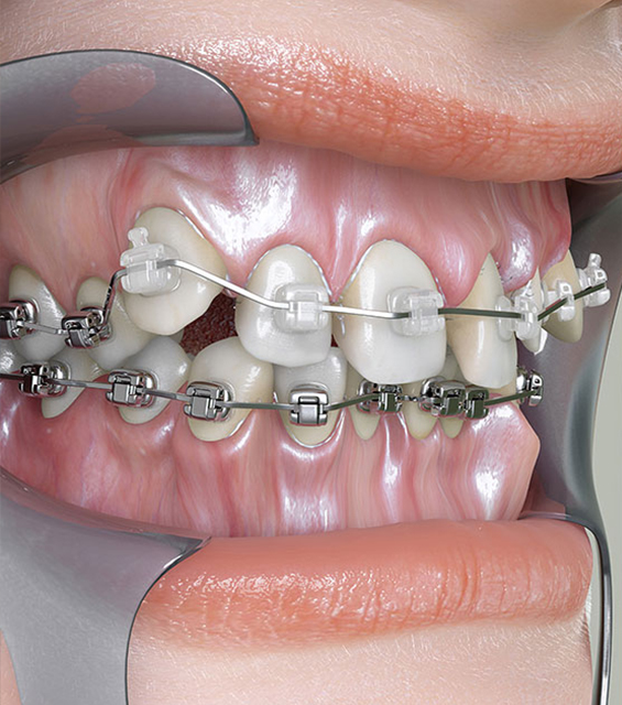 Traditional metal braces have been used for about a hundred years and are still commonly used to straighten teeth. A similar option is ceramic braces which are the same as metal braces but made from white or tooth-coloured ceramic material. They are not completely invisible but are less obvious than metal braces. Another option is lingual braces. These metal braces are stuck to the inside surface of the teeth making them practically invisible.